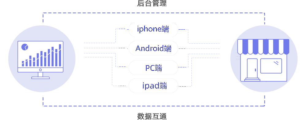 打通數(shù)據(jù)多端同步,實現(xiàn)線上線下業(yè)務全覆蓋,并通過后臺統(tǒng)一管理
